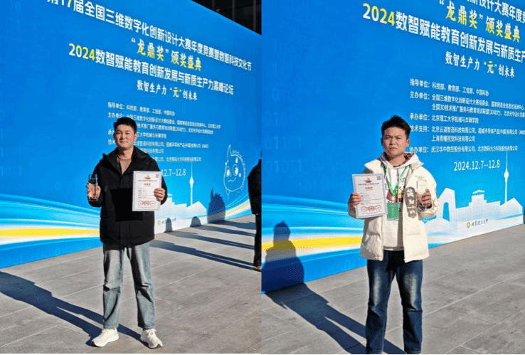 由学生付佳林、王亚星组成的“海阔天高”参赛团队,在指导教师宋杰和王可心的悉心指导下,一路过关斩将,成功闯入全国总决赛。经过激烈的角逐和评审团的严谨评审,“海阔天高”团队最终荣获全国总决赛三等奖,为学院争得荣誉。这份荣誉的背后,是团队成员无数个日夜的辛勤付出和不懈努力,他们深入钻研专业知识,不断探索三维数字化技术的前沿应用,反复优化设计方案,力求将每一个细节都做到尽善尽美。同时,这也离不开指导教师的精心指导和专业支持,两位老师在整个备赛过程中,从选题的精准把握、技术的难点攻克到团队协作的协调优化,都给予了学生全方位的指导和帮助,为团队的成功提供了坚实的保障。